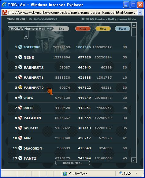 ちなみにEARNEST1はExpランクの5位、6位を行ったり来たり。