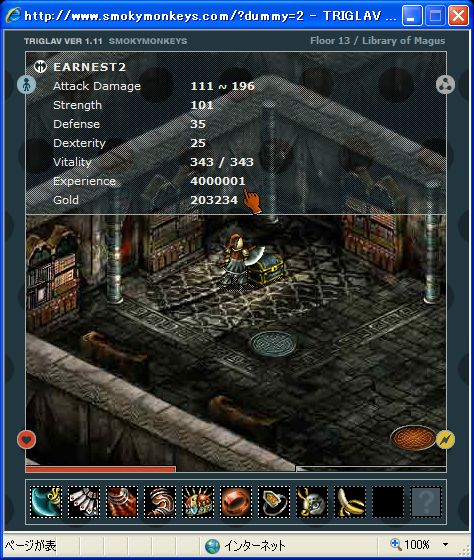 JIキープしつつ、GOLDを貯め、レアアイテムをGETできるフロア(贅沢)がないかと考えていたら、11Fにたどりつきました。